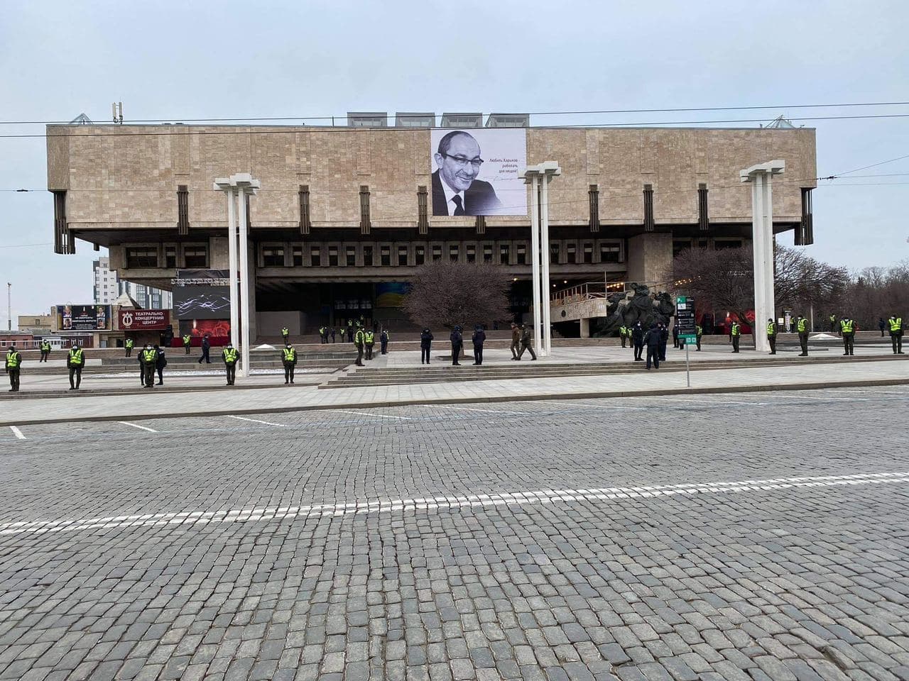 В театр пускают всех желающих. Внутри театра есть несколько охранников, которые следят за общественным порядком. Сотрудников полиции или Нацгвардии в самом театре нет.