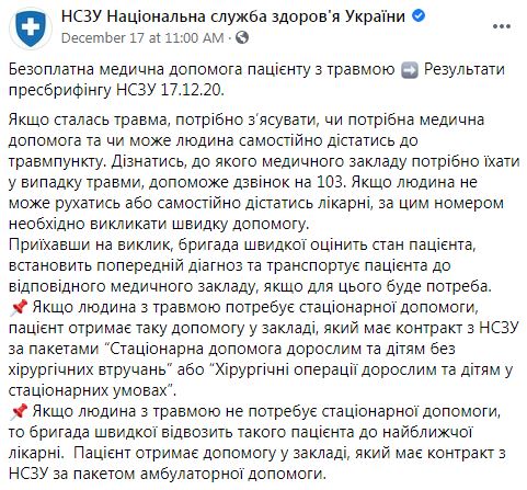В Национальной службе здоровья Украины рассказали, на какую бесплатную медицинскую помощь может рассчитывать пациент, который травмировался.