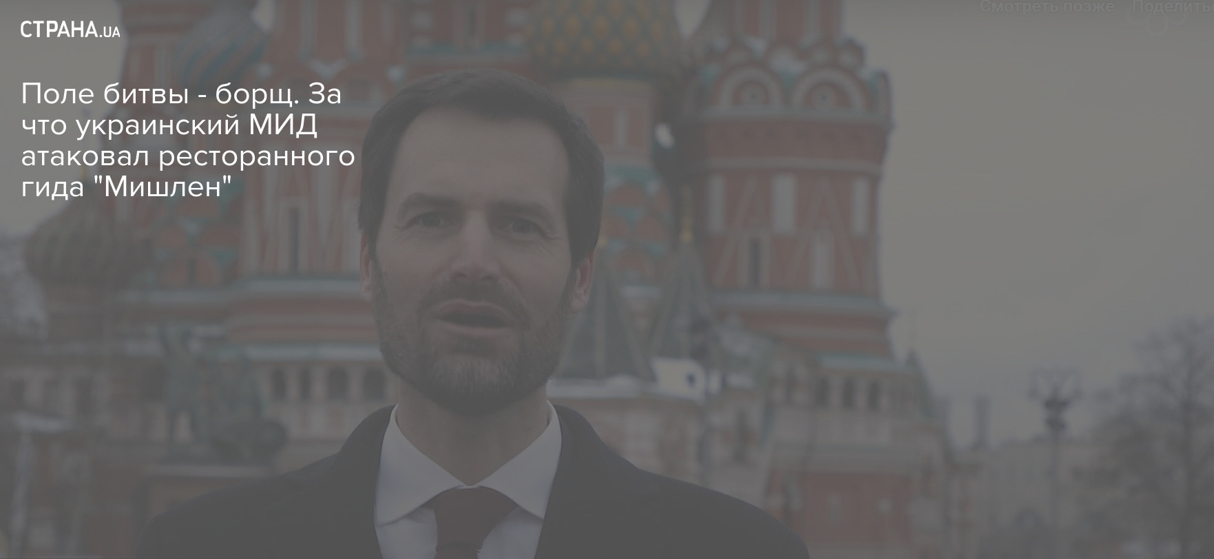 А вчера посольство нашей страны во Франции добралось до ресторанных экспертов от Michelin. Они на днях совершили тяжкий в глазах МИД Украины проступок: назвали борщ русским блюдом.