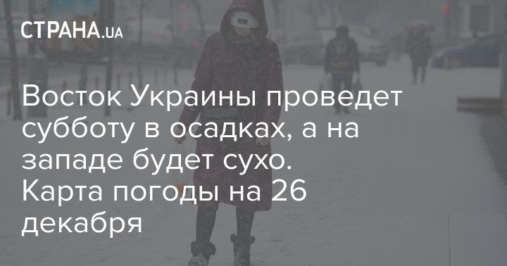 В субботу, 26 декабря, влажная погода задержится на территории восточной Украины, а вот наиболее низкая дневная температура воздуха ожидается в западных и центральных областях.