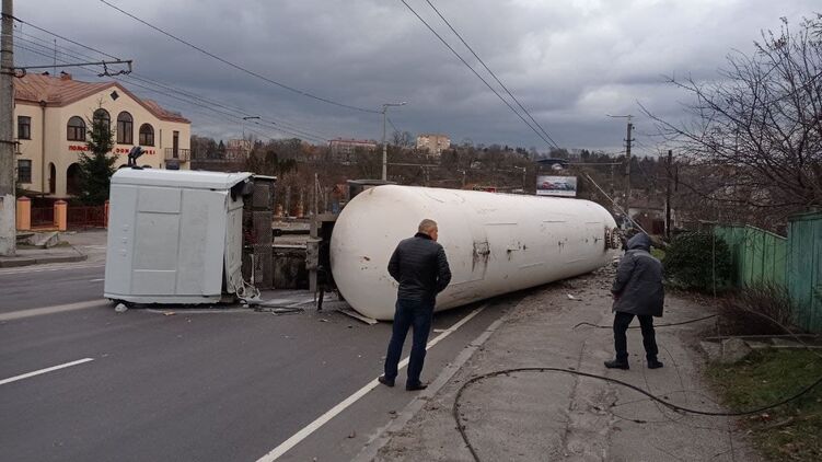 "26 декабря в 13:58 в Житомире по ул. Чудновская водитель газовоза не справился с управлением, допустил столкновение с троллейбусной электроопорой и перевернулся на бок. Жертв и пострадавших нет. Цистерна не повреждена", - говорится в сообщении на странице спасателей в Facebook.