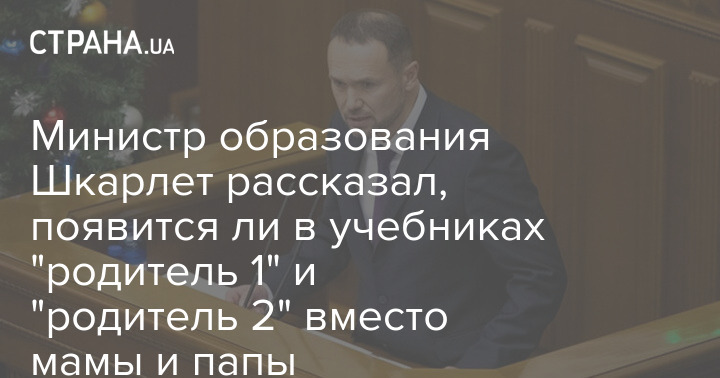 Министр образования Шкарлет рассказал, появится ли в учебниках "родитель 1" и "родитель 2" вместо мамы и папы