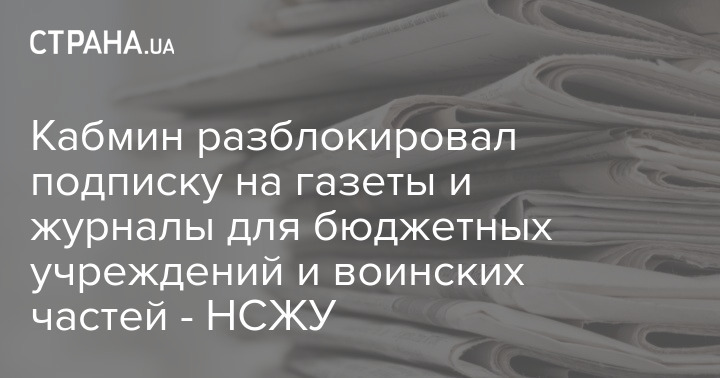 Кабинет министров снял запрет на подписку на печатные СМИ для бюджетных учреждений и воинских частей. Так, правительство внесло изменения в свое недавнее решение о запрете на предварительную оплату товаров, работ и услуг, закупаемых за бюджетные средства, под которую попала и подписка прессы.