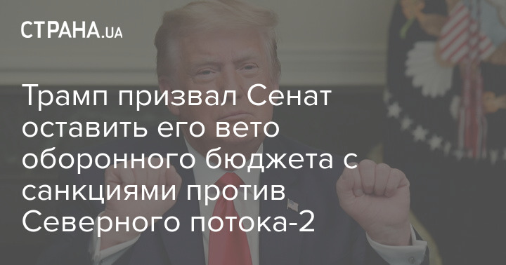 Президент США Дональд Трамп призвал Сенат отказаться от преодоления его вето на законопроект NDAA-2021 с оборонным бюджетом страны, который среди прочего содержит санкции против "Северного потока-2".