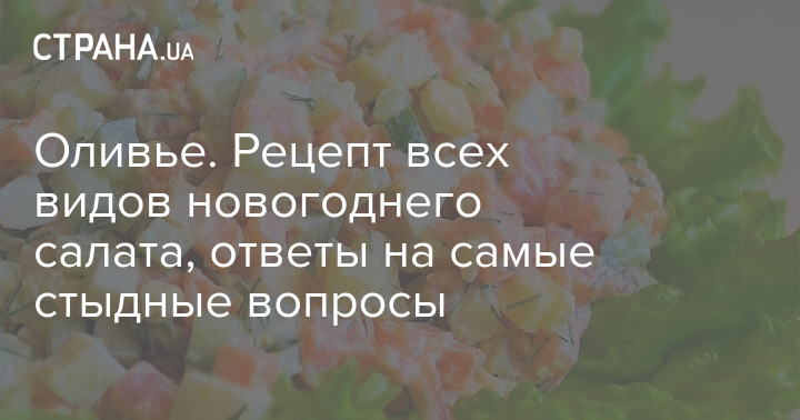 В этом материале "Страна" публикует состав оливье (причем, все возможные варианты - как классического, так и оригинального). Еще мы подробно отвечаем на самые стыдные вопросы про главный новогодний салат. Обо всем этом ниже, а по ссылке бонус - что приготовить еще на Новый год 2021: оригинальные закуски и фруктовое канапе.