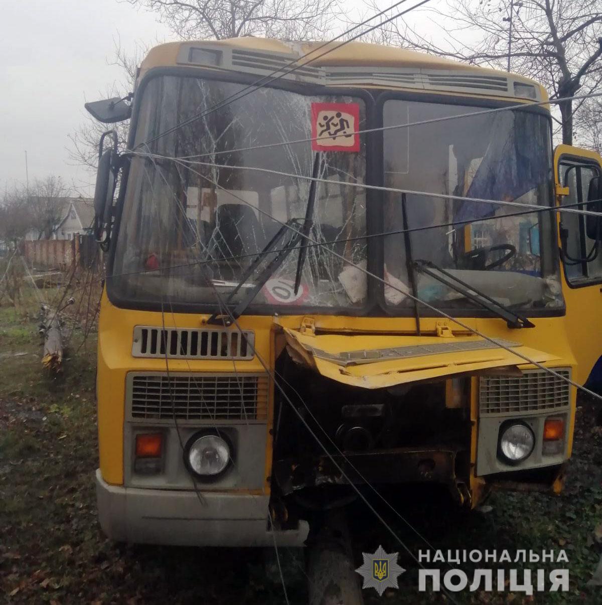 Водитель школьного автобуса с детьми потерял сознание под Полтавой и въехал в столб. Фото