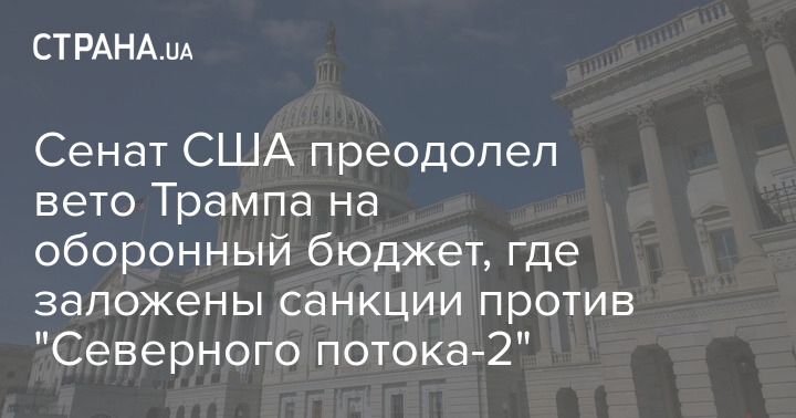 Сенат Соединенных Штатов преодолел вето, наложенное президентом Дональдом Трампом, и поддержал оборонный бюджет на 2021 год. В документ включены положения касательно санкций против "Северного потока-2" и военной помощи Украине.