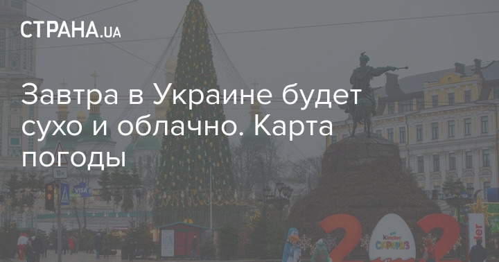 Завтра в Украине будет сухо и облачно. Карта погоды