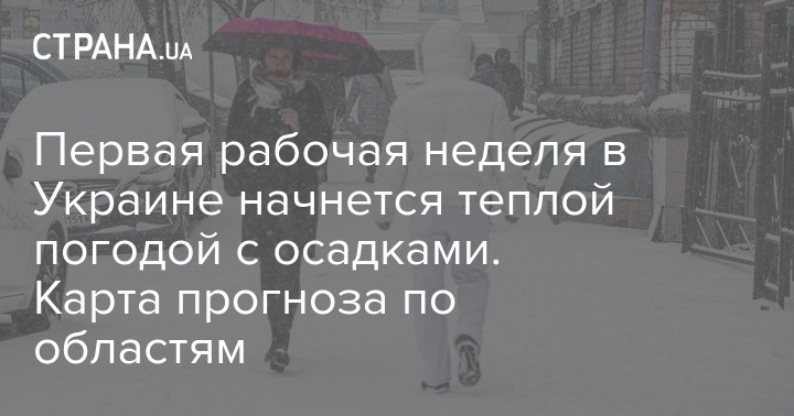 Первая рабочая неделя в Украине начнется теплой погодой с осадками. Карта прогноза по областям