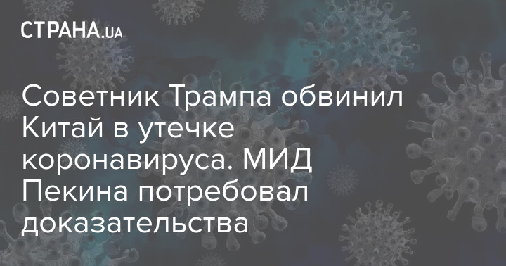 Советник Трампа утверждает, что вирус мог "ускользнуть" из лаборатории в результате чрезвычайной ситуации, но приводить какие-либо доказательства он не стал.