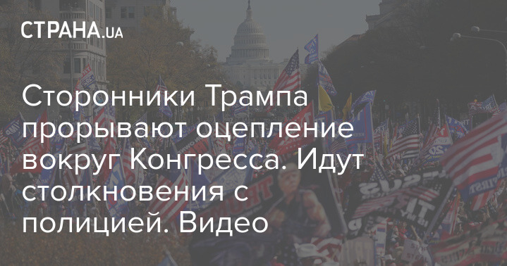 Сторонники Трампа прорывают оцепление вокруг Конгресса. Идут столкновения с полицией. Видео