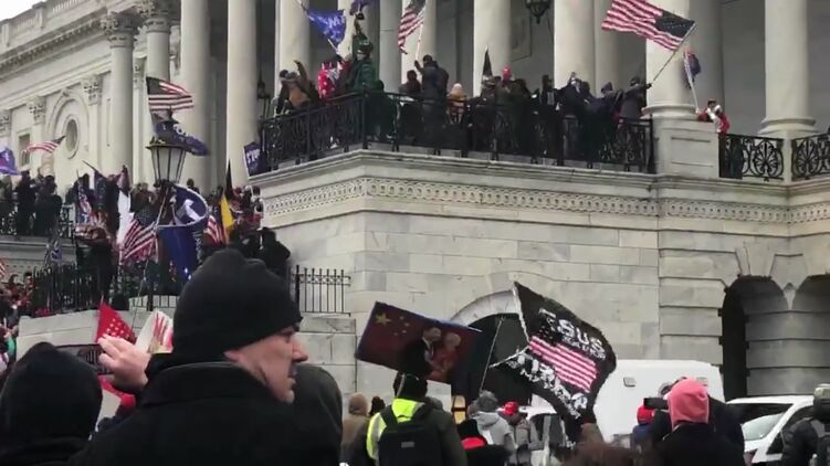На одной записи, снятой очевидцем с балкона Капитолия, видно, как протестующие довольно неторопливо подтягиваются ко входам в здание.