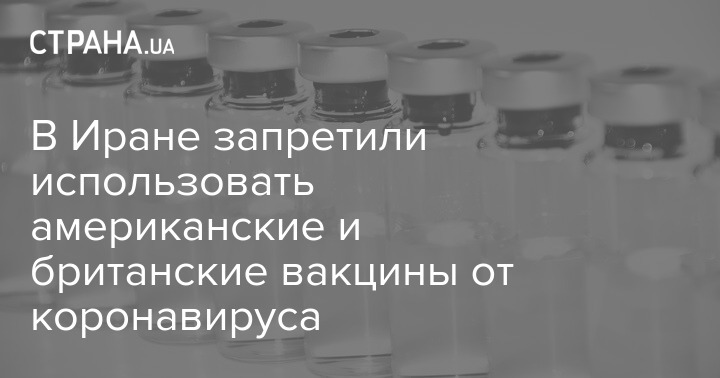 Верховный лидер Ирана Али Хаменеи запретил использовать в стране вакцины от коронавируса из Великобритании (в настоящее время это AstraZeneca - Ред.) и США (сейчас это препарат от Pfizer и BioNTech, а также Moderna - Ред.).