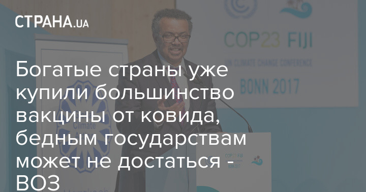 Богатые страны уже купили большинство вакцины от ковида, бедным государствам может не достаться - ВОЗ