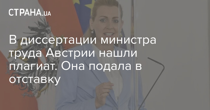 Министр труда, семьи и молодежи Австрии Кристина Ашбахер подала в отставку после того, как независимый эксперт обвинил ее в плагиате при написании диссертации.