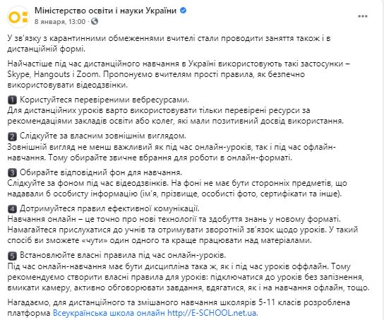 Под постом министерства с рекомендациями для учителей пользователи пишут, что сам факт проведения уроков из дома нарушает право на неприкосновенность жилья.
