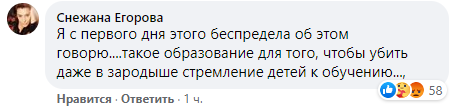 Украинская телеведущая и мать пятерых детей Снежана Егорова тоже негативно отзывается о дистанционном обучении. "Я с первого дня этого беспредела об этом говорю... такое образование, чтобы убить даже в зародыше стремление детей к обучению", - пишет она.