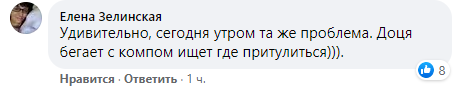 Пользователь Елена Зелинская из Киева тоже говорит об аналогичной проблеме своего ребенка: "Удивительно, сегодня утром та же проблема. Доця бегает с компом ищет где притулиться".