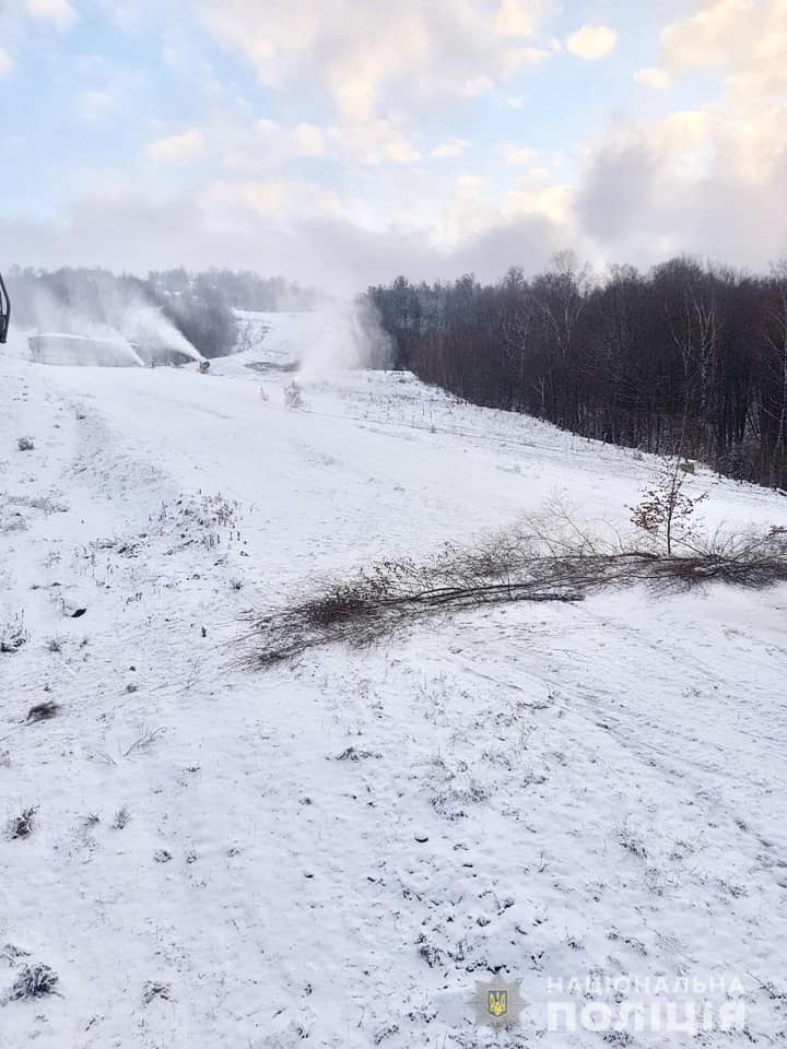 В ведомстве сообщили, что группа местных жителей из Великоберезнянского района "вступила в конфликт с администрацией и блокировала работу горнолыжной трассы ветвями деревьев".