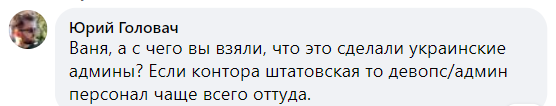 "Ваня, а с чего вы взяли, что это сделали украинские админы? Если контора штатовская то девопс/админ персонал чаще всего оттуда", - добавил Юрий Головач.