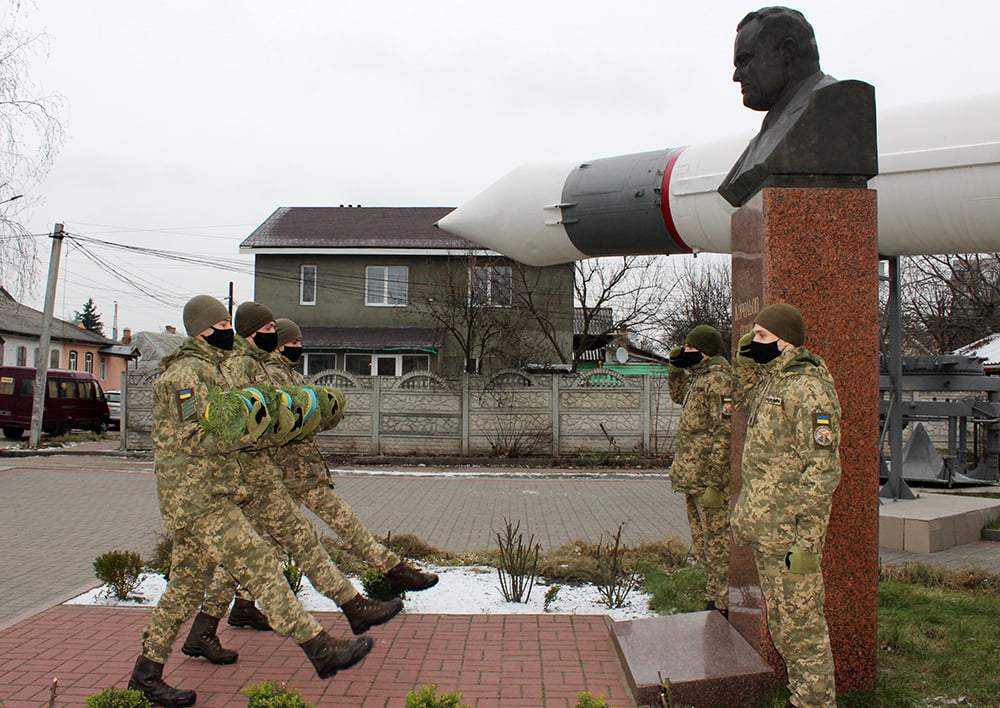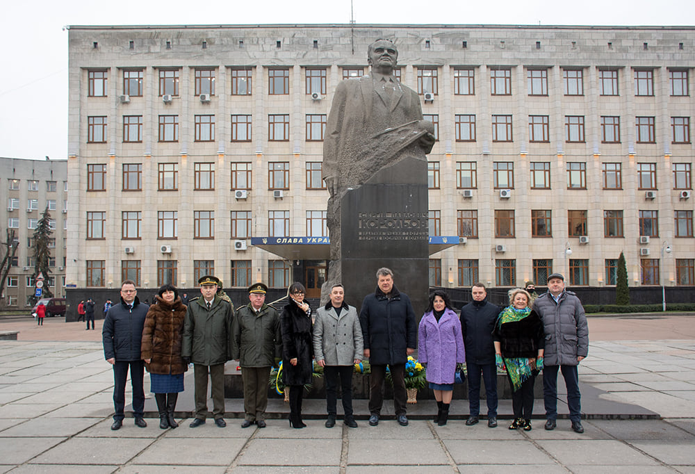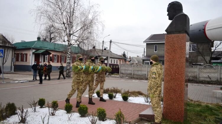 В Житомире, где родился Сергей Королев, местные власти и курсанты военного института сегодня возложили  цветы к его памятнику и бюсту.