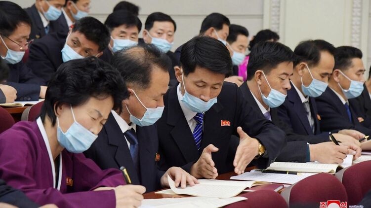 Власти Северной Кореи внезапно надели защитные маски, фото: KCNA / Reuters