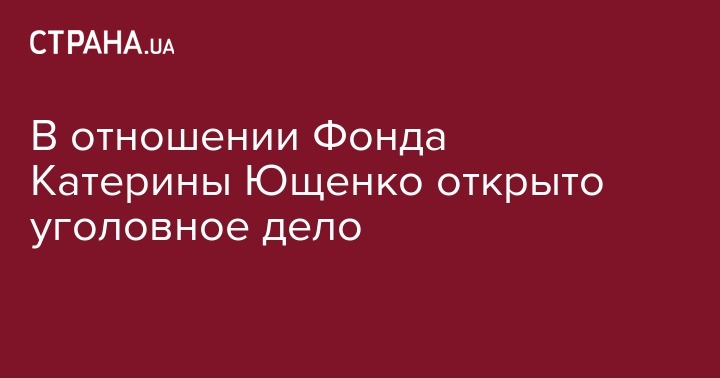 В отношении Фонда Катерины Ющенко открыто уголовное дело
