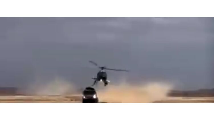 Вертолет вплотную подлетел к грузовику. Скриншот из видео