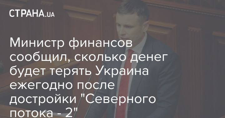 Министр финансов Сергей Марченко заявил, что после достройки и запуска российского трубопровода "Северный поток-2" наша страна будет терять около 1,5 миллиардов долларов ежегодно.
