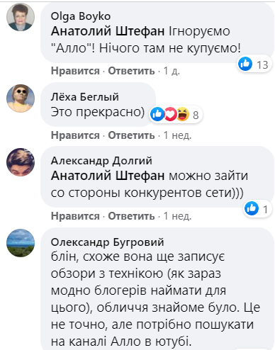 "Оказывается, она является сотрудницей сети", - продолжал подогревать интерес к блогерше Штефан. В комментариях сторонники предложили бойкотировать магазин "Алло".