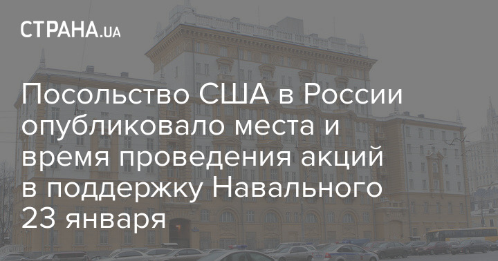 Сайт посольства США в Москве опубликовал список российских городов, в которых 23 января пройдут митинги в поддержку оппозиционера Алексея Навального. В посольстве призвали своих граждан избегать указанных мест.