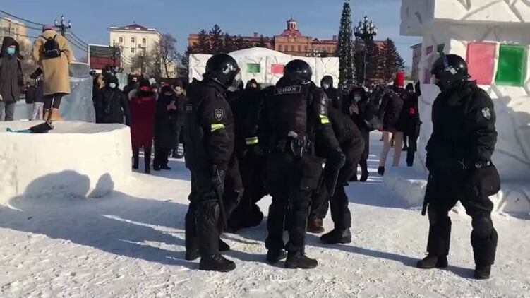 В Якутске, где люди вышли на улицы несмотря на -51 мороза, задержали четверых митингующих.