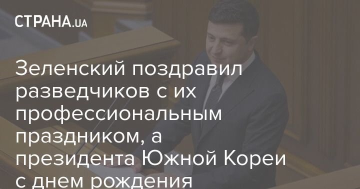Президент Украины Владимир Зеленский в воскресенье, 24 января, обнародовал два поздравительных сообщения. Одно - по случаю Дня внешней разведки Украины, второе - в честь дня рождения президента Южной Кореи Мун Чжэ Ина.