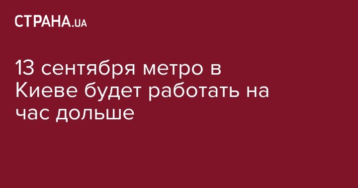 В ночь с 13 на 14 сентября столичный метрополитен продлит свою работу на один час. Об этом сообщает пресс-служба КП "Киевский метрополитен".