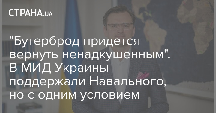 "Надо понимать Россию. Мы не должны также очаровываться Алексеем Навальным с точки зрения интересов Украины. Я убежден, что "бутерброд" придется вернуть, причем не надкушенным, а свежим, в хорошем состоянии. Здесь не должно быть никаких иллюзий", - сказал Кулеба.