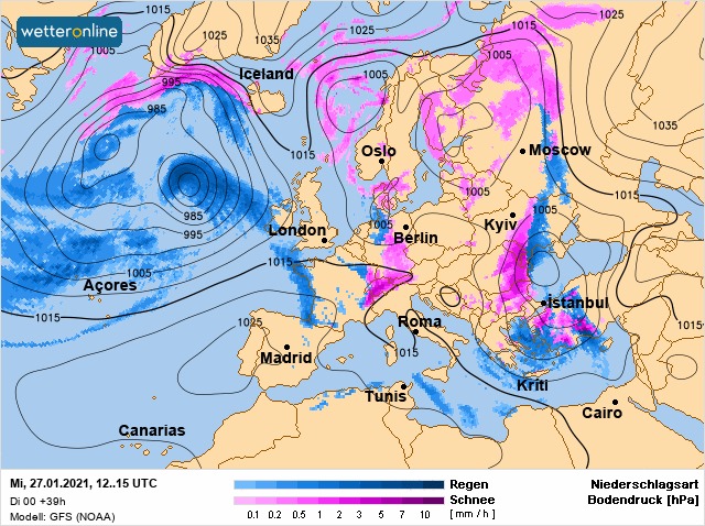 Вечером 27 января и ночью 28 января циклон подчинит себе северные области.