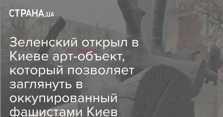 инсталляция на проспекте Победы в Киевев открытии инсталляции принял участие Владимир Зеленскийинсталляция Взгляд в прошлоепрезентация инсталляции на проспекте Победы в Киевевнутри стелы размещены фото оккупированного фашистами Киевафото немецкого фотографа-пропагандистафото немецкого фотографа-пропагандиста