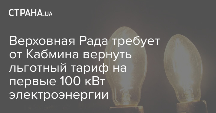 Верховная Рада приняла за основу и в целом проект постановления, в котором рекомендует Кабинету Министров Украины вернуть льготный тариф на первые 100 кВт электроэнергии, который правительство отменило месяц назад.
