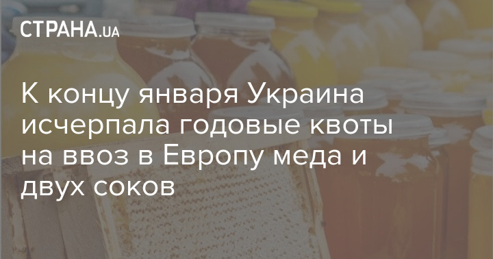 В первый же месяц года Украина исчерпала выделенные на 2021-й квоты на беспошлинные поставки в страны Европейского Союза меда, виноградного и яблочного соков. Такие данные по состоянию на 25 января приводит Украинский клуб аграрного бизнеса.