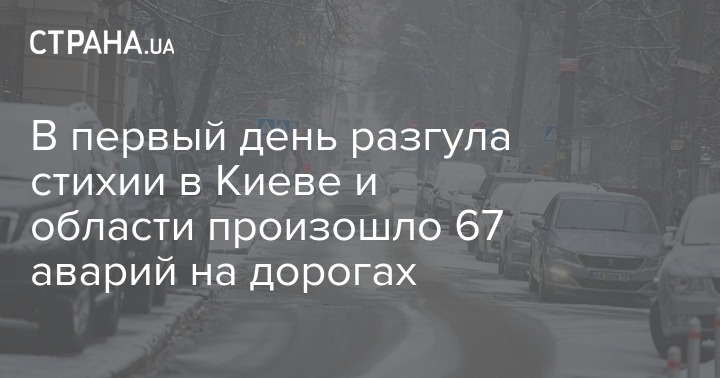 В первый день разгула стихии в Киеве и области произошло 67 аварий на дорогах