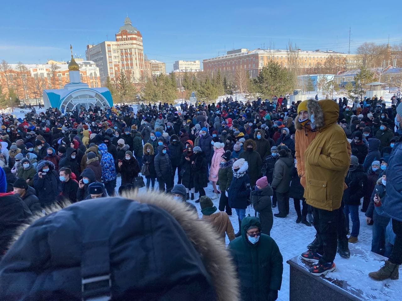 Но большого количества людей нет нигде. Вот, например, в Омске, собралось порядка 400 человек.