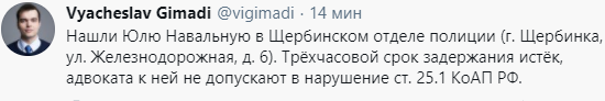 16:30 Жена Навального до сих пор в отделении полиции.