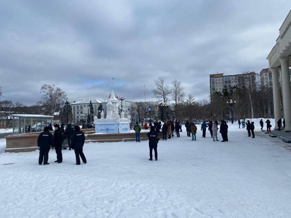 09:45 На Сахалине вышло около 15 сторонников Навального.