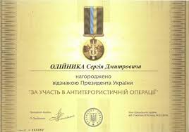 19 марта 2019 года на сайте Госкомтелерадио появилась еще одна заметка. В ней говорилось о том, что тогдашний президент Петр Порошенко наградил Сергей Олийныка, бывшего кадрового военного, который пошел добровольцем в АТО знаком отличия "За участие в Антитеррористической операции" .