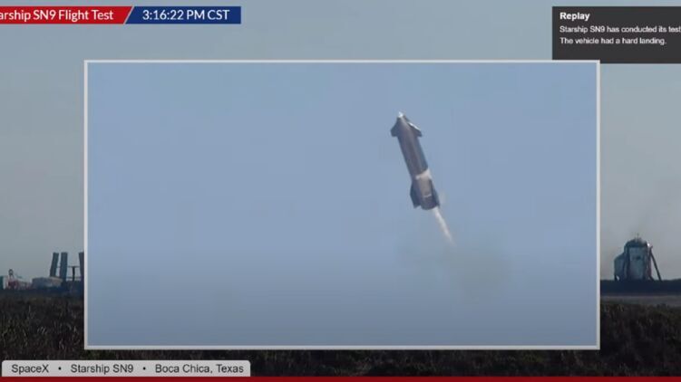 Корабль повторил программу Starship SN8, который 9 декабря прошлого года поднялся на высоту 12,5 км, но при посадке также разбился из-за отказа одного из двигателей.
