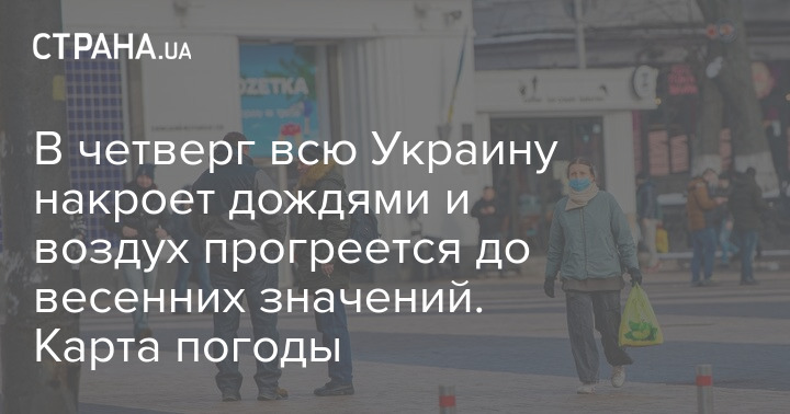 В четверг всю Украину накроет дождями и воздух прогреется до весенних значений. Карта погоды