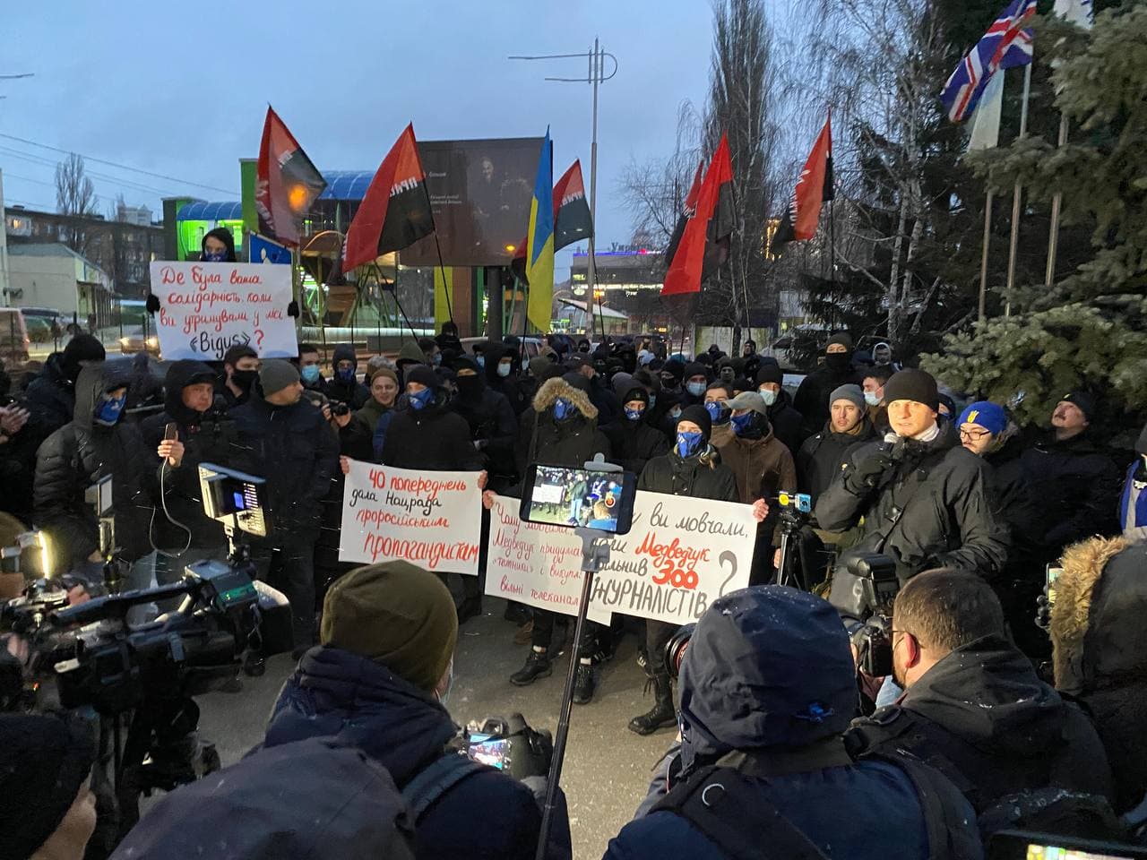 Сегодня, 6 февраля, ультраправые в Киеве приходили под офисы телеканалов "Наш" и "Интер. Они требовали закрытия этих медиа - вслед за каналами 112, Newsone и Zik, которые попали под санкции Зеленского и прекратили вещание.