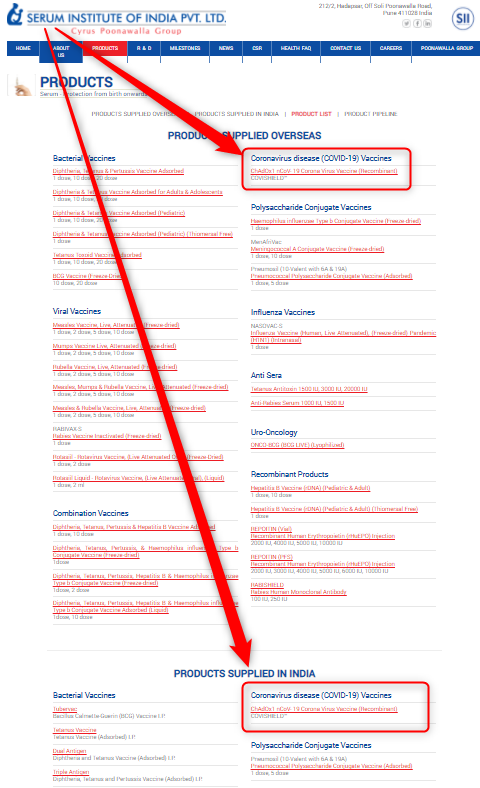 Более того, в спецификации товара на сайте производителя указывается, что Serum Institute производит свою вакцину, а компания AstraZeneka - свою. Хотя и говорится, что у них общий принцип действия. Но подчеркивается, что "Астру" делают на мощностях самой AstraZeneka.