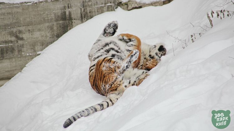 Тигру снег явно по душе. Фото: Facebook/ zoo.kyiv.ua