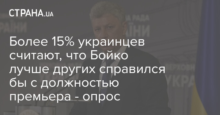 В Украине провели очередной соцопрос. Так, 15,3% украинцев считают, что лидер партии "Оппозиционная платформа - За жизнь" Юрию Бойко лучше других справился бы с работой в должности главы правительства.
